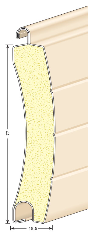 - Lame ALU double paroi avec mousse polyurethane de 19 mm d'épaisseur.